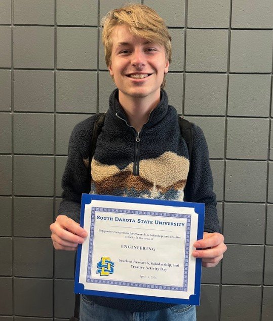 In addition, Jacob has recently been awarded the Joseph F. Nelson Award for Undergraduate Research from the Van D. & Barbara B. Fishback Honors College at South Dakota State University. This prestigious award will support the continuation of his research in the Tarafder Lab.